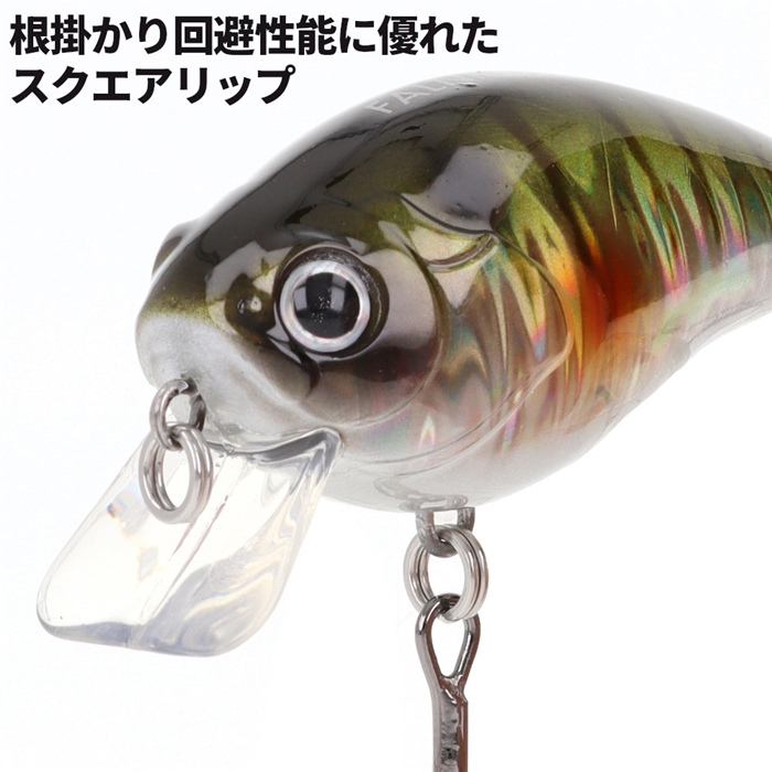 48mmという小型ボディでありながら抜群の飛距離を実現。さらに独特のアクションがワームでは釣れないバスを強烈に誘発。適度な浮力とスクエアリップにより、根掛かり回避性能を高めた理想のシャロークランク。[CM-680][FALKEN R FALNK-48][26new16]