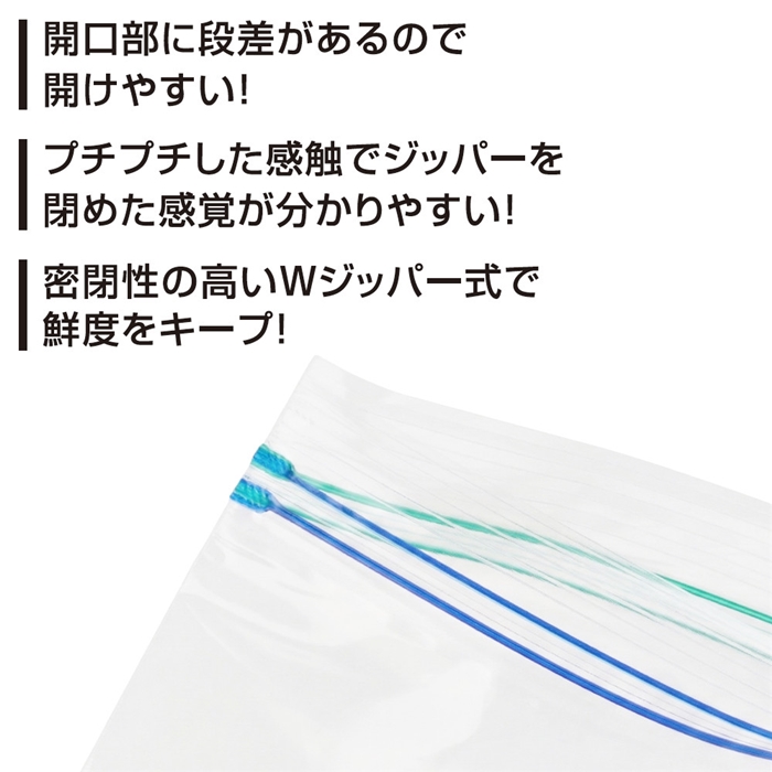 食材の冷凍保存や漬け込み調理に便利なたっぷり入るマチ付き袋。Wジッパー式でしっかりと止まります。[JT-006]