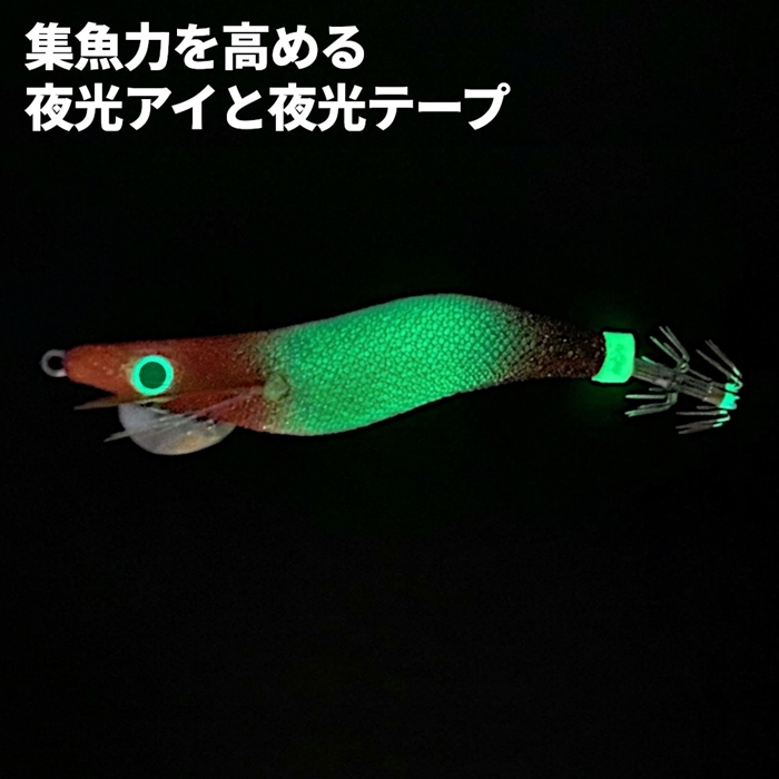 皆さんはイカメタル派ですか?それともオモリグ派?どちらのスタイルにもしっかり対応してくれるのが、このエギ。状況に合わせて仕掛けをチェンジしたい時、ルアーボックスに忍ばせておくと心強いアイテムです!夜光アイと夜光テープ、そしてケイムラフェザーが、ターゲットにしっかりアピール。特選布の生命感と、抱きやすいスリムボディの相乗効果で、違和感なく抱かせます。掛かりの良さを追求した12本針2段仕様にも注目。[JJ-0045][FALKEN R EGI NORIMARU]
