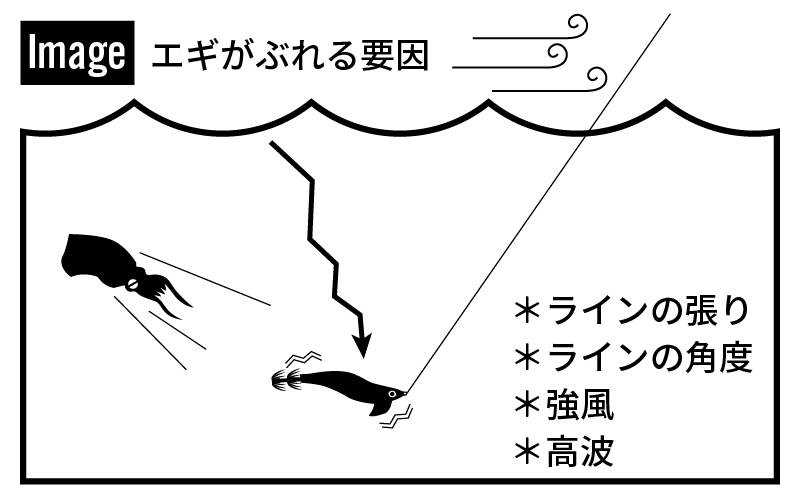 フォール中にエギがぶれると低活性のイカに違和感を与えてしまう。
