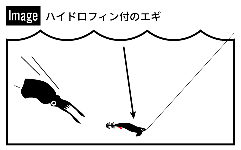 ◎ハイドロフィンが舵の役割を果たし、まっすぐ落ちやすいためイカが警戒しにくい。