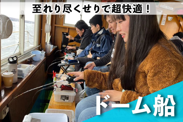 小屋がついた船や水上に浮いたビニールハウスのような施設で楽しむ釣りで、椅子があったり暖房があったり、寒い冬でも非常に快適に釣りが楽しめます。